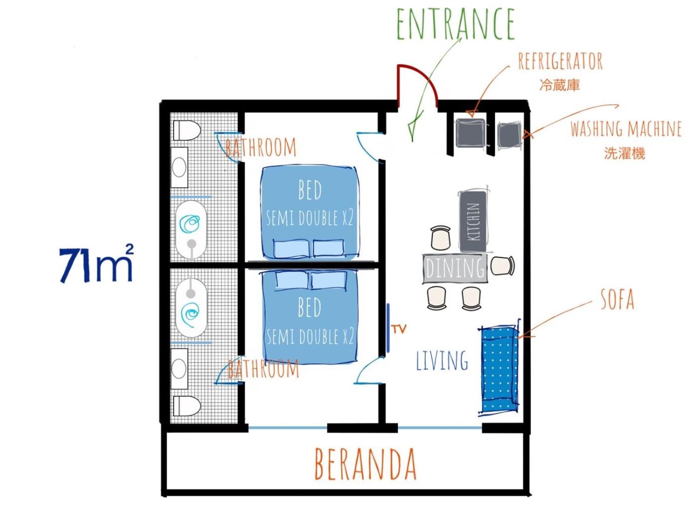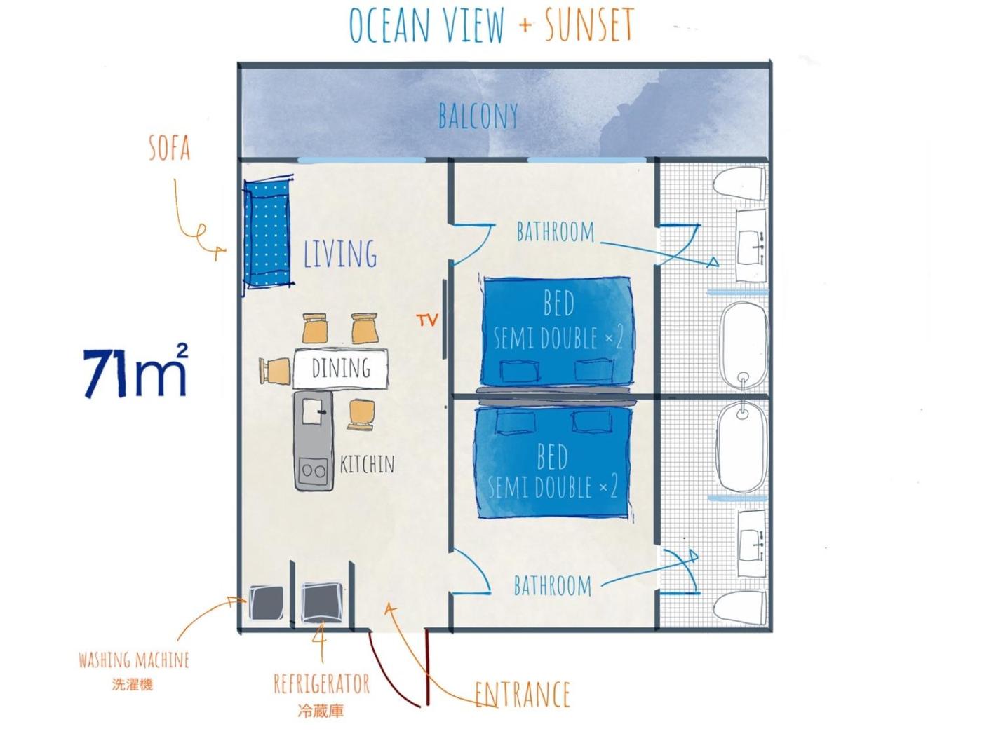 Guest rooms are equipped with air conditioning, a fridge, an oven, a kettle, a bidet, free toiletries and a desk. Featuring a private bathroom with a shower and a hairdryer, rooms at the hotel also offer free WiFi, while certain rooms include a city view. The units in Blue Steak Wonder Chatan are equipped with a flat-screen TV and slippers.