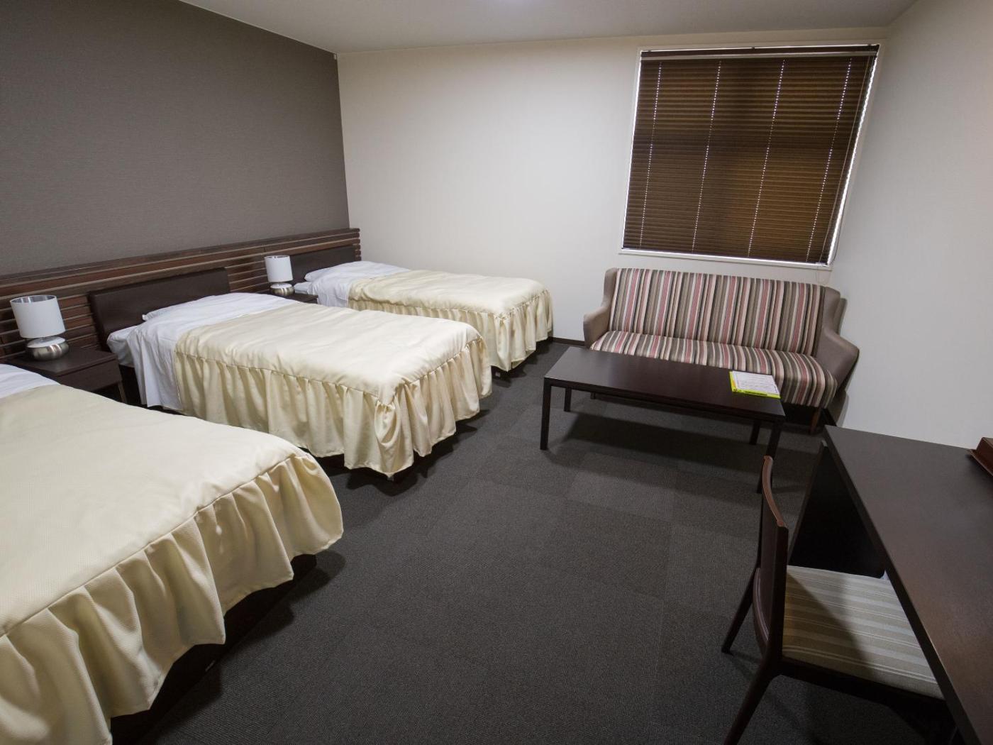 Japanese-Style Room. Providing free toiletries, this quadruple room includes a private bathroom with a bath, a shower and a bidet. The quadruple room provides air conditioning, tatami, a safe deposit box, an electric kettle and a flat-screen TV with satellite channels. The unit offers 4 futons.
