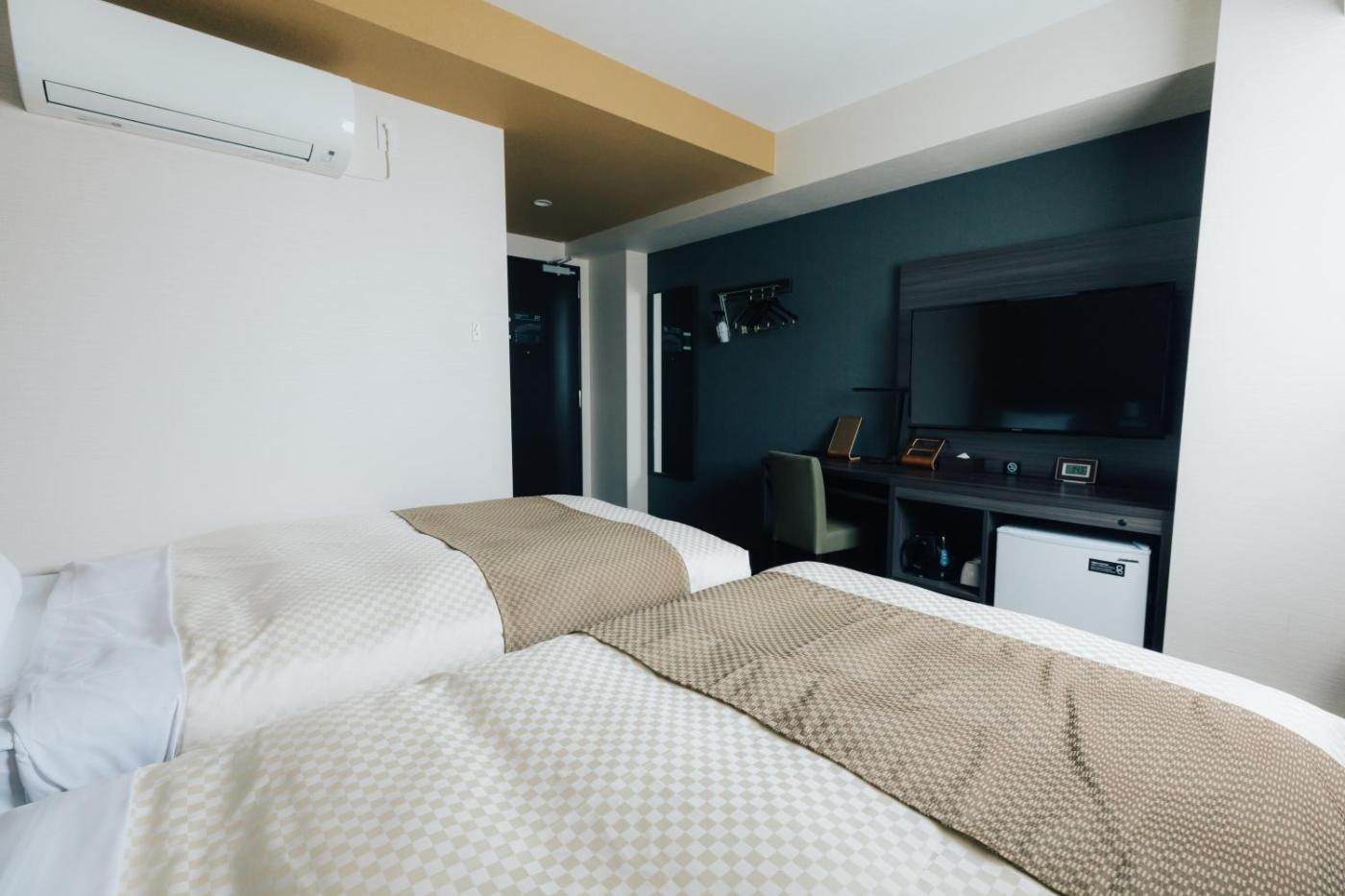 Economy Twin Room. The twin room offers air conditioning, a safe deposit box, as well as a private bathroom boasting a bath and a shower. This twin room has an electric kettle, a carpeted floor and a flat-screen TV. The unit has 2 beds. ;