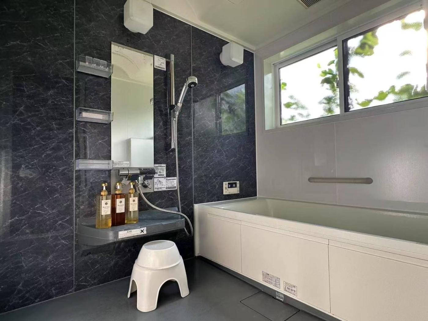 Double Room with Shared Toilet. Guests will have a special experience as the double room features a hot tub. Offering free toiletries, this double room includes a shared bathroom with a walk-in shower, a hairdryer and slippers. The air-conditioned double room offers a flat-screen TV with cable channels, a washing machine, tatami, a private entrance as well as garden views. The unit has 2 futons. ;