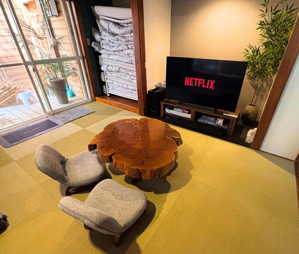 Two-Bedroom Family Apartment. This apartment offers a hot tub. This air-conditioned apartment comprises 2 living rooms, 2 separate bedrooms and 2 bathrooms with a hairdryer. The fully equipped kitchen features a stovetop, a refrigerator and a microwave. The apartment provides a washing machine, tatami, tumble dryer, heating, as well as a flat-screen TV. The unit offers 5 beds.