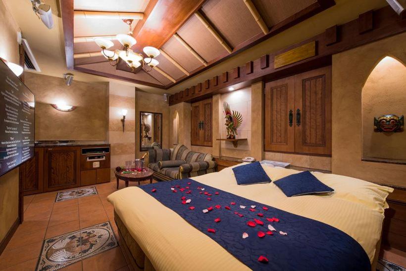 Guests at the love hotel can enjoy an American or an Asian breakfast.