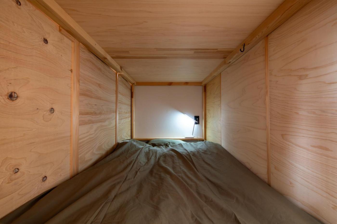 At the capsule hotel rooms are fitted with air conditioning and a shared bathroom.