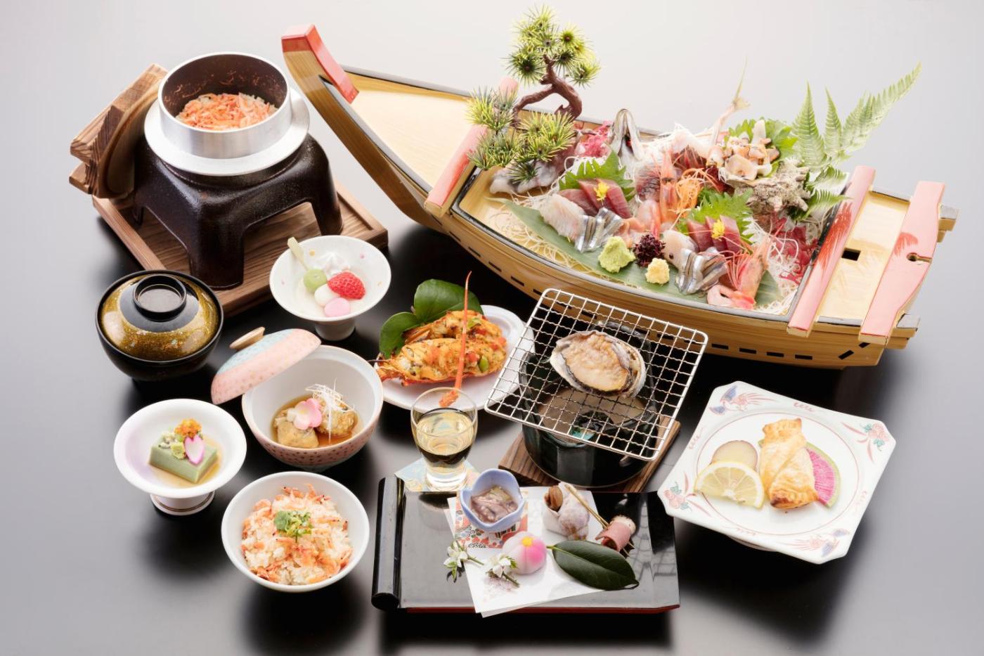 Japanese-Style Room with Sea View and Open-Air Bath - Meal Provided at Restaurant. This room boasts a modern Japanese-style design and scenic views of the ocean. There is a Japanese-style veranda, an en suite bathroom and toilet. Guests can soak themselves in the open-air bath, which offers free flowing spring water directly from the hot spring source. Meals are served in the dining hall.