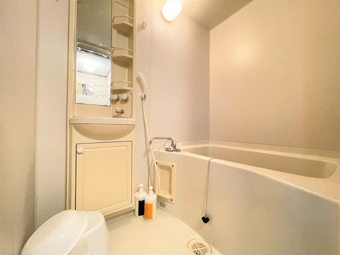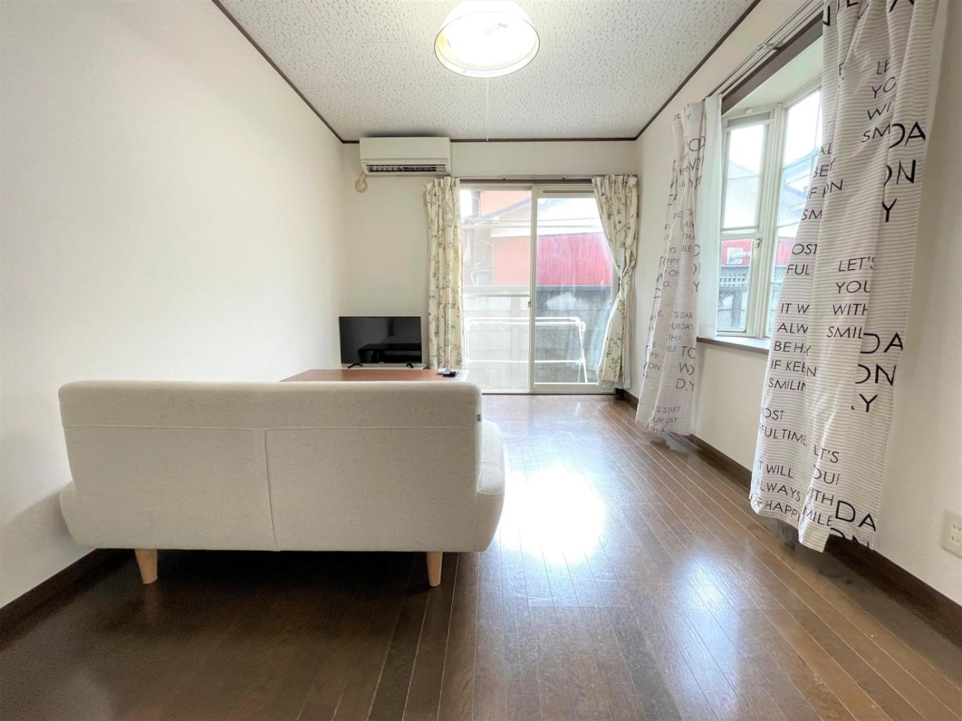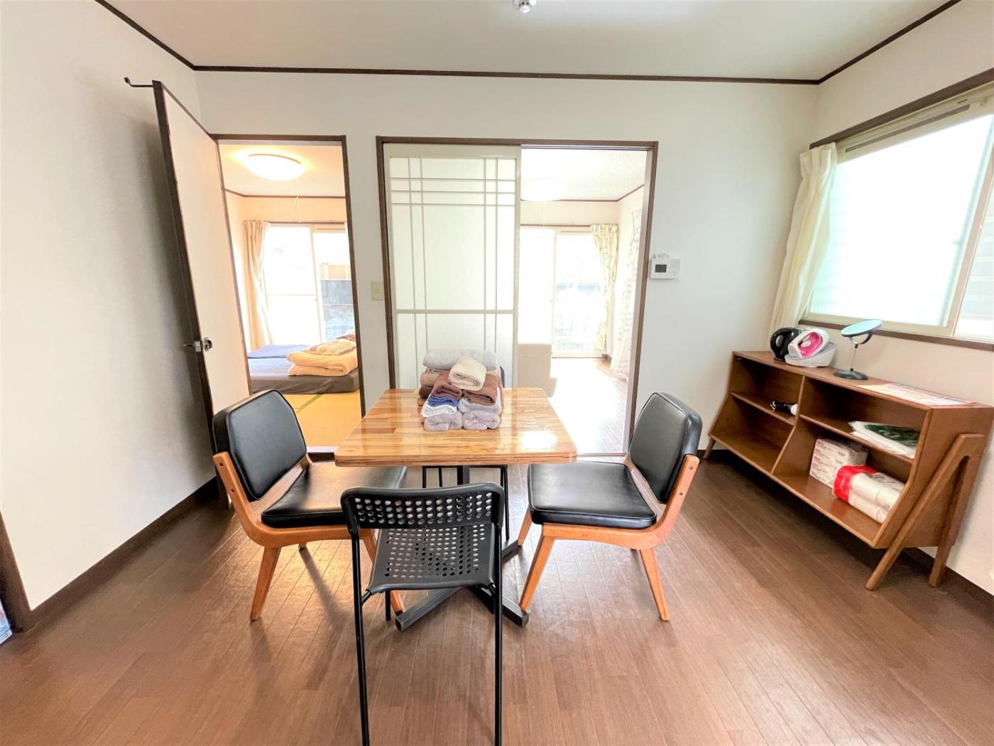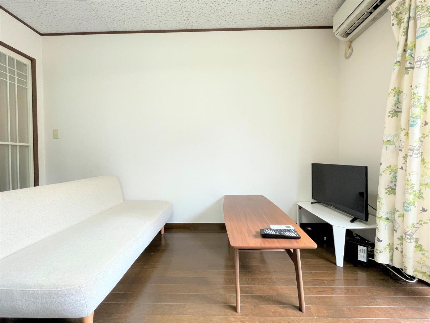 One-Bedroom Apartment. Featuring a private entrance, this air-conditioned apartment consists of 1 living room, 1 separate bedroom and 1 bathroom with a shower and a hairdryer. The well-fitted kitchen features a stovetop, a refrigerator, kitchenware and a microwave. The apartment provides a flat-screen TV, a washing machine, tatami, a sofa as well as a quiet street view. The unit offers 2 beds and 2 futons.