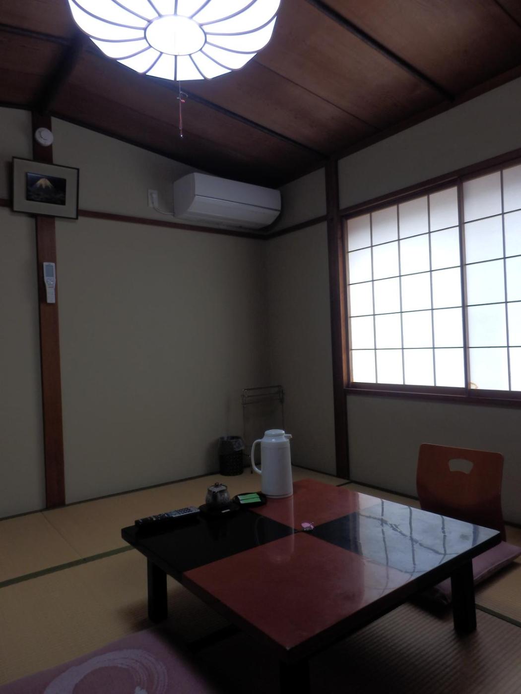Japanese-Style Room. Featuring tatami (woven-straw) flooring and traditional futon beds, this twin room has air conditioning, a TV and a fridge. Toilets and bathrooms are shared with other guests. ;