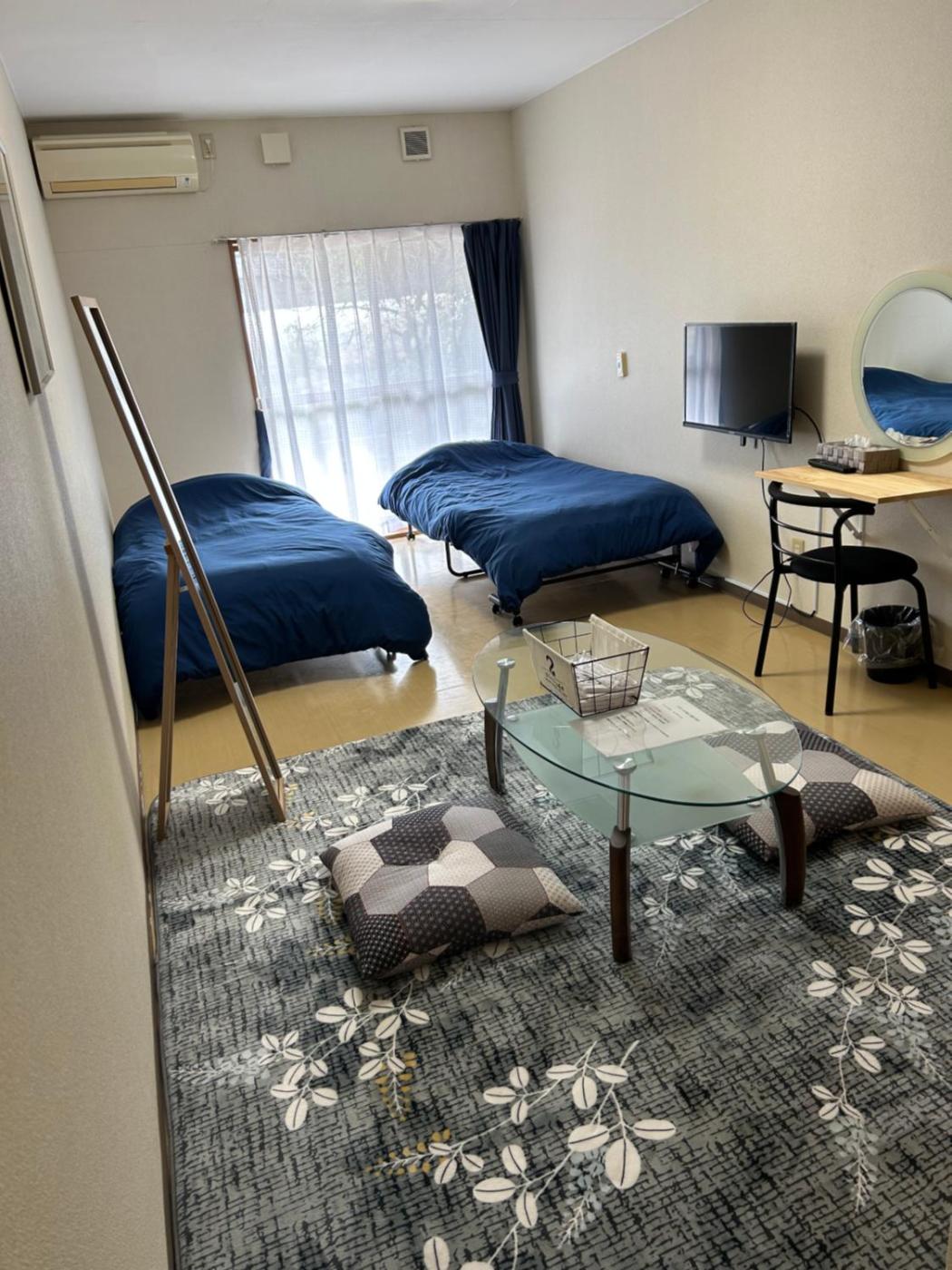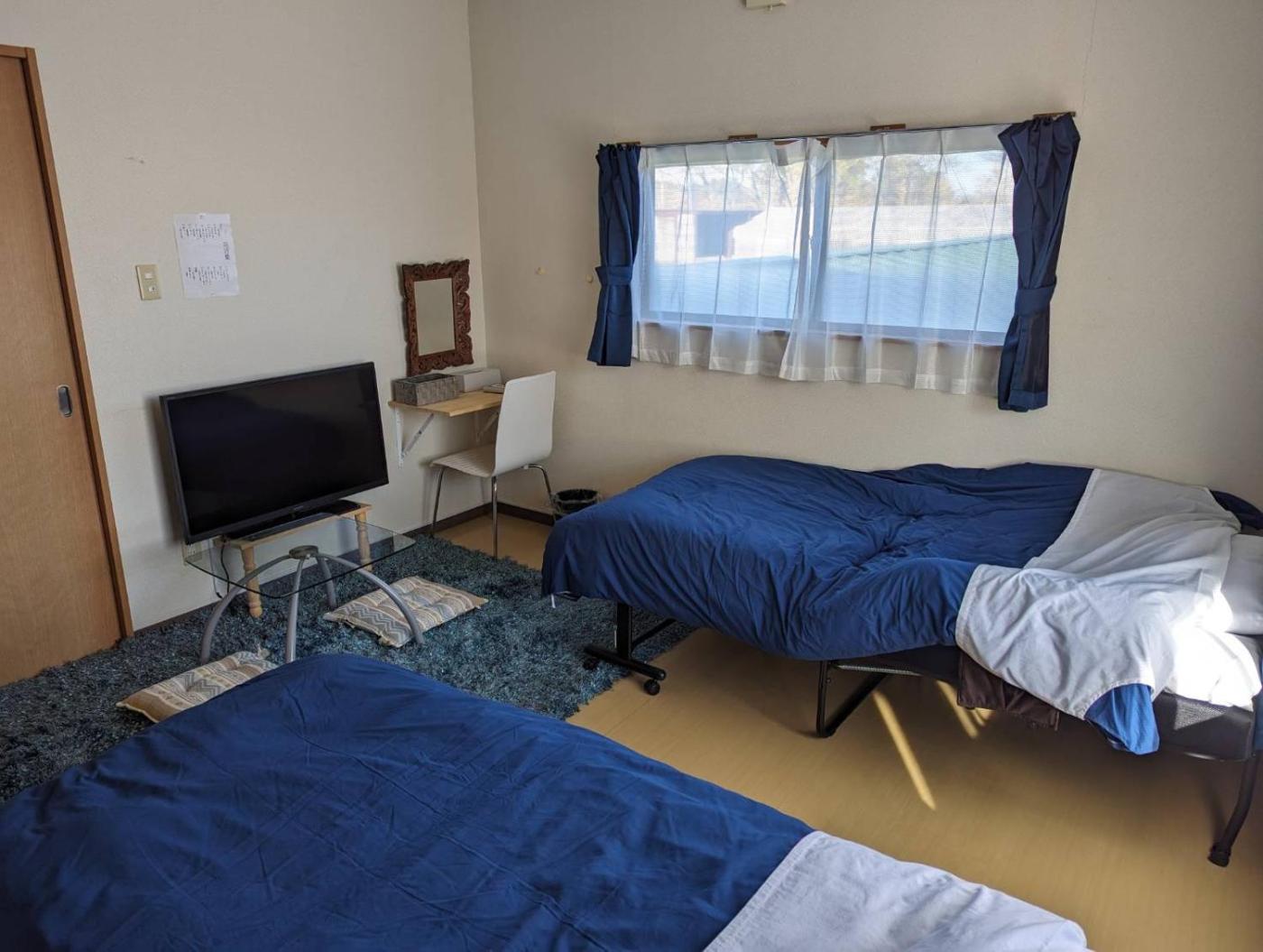 Twin Room with Futon Mat and Shared Bathroom - Non-Smoking. This air-conditioned twindouble room has a desk, a terrace, mountain views and a shared bathroom. The unit has 2 beds and 2 futons. ;