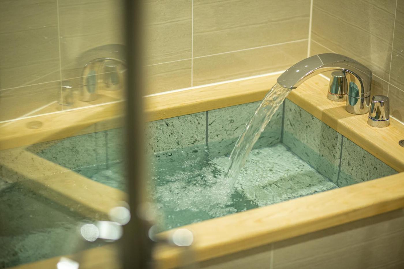 Deluxe Family Room. The spacious family room features air conditioning, tatami, as well as a private bathroom boasting a shower and a bidet. The well-fitted kitchen has a stovetop, a refrigerator, kitchenware and a microwave. The family room features carpeted floors, a seating area with a flat-screen TV, a dining area, a wardrobe as well as city views. The unit has 3 beds and 2 futons. ;