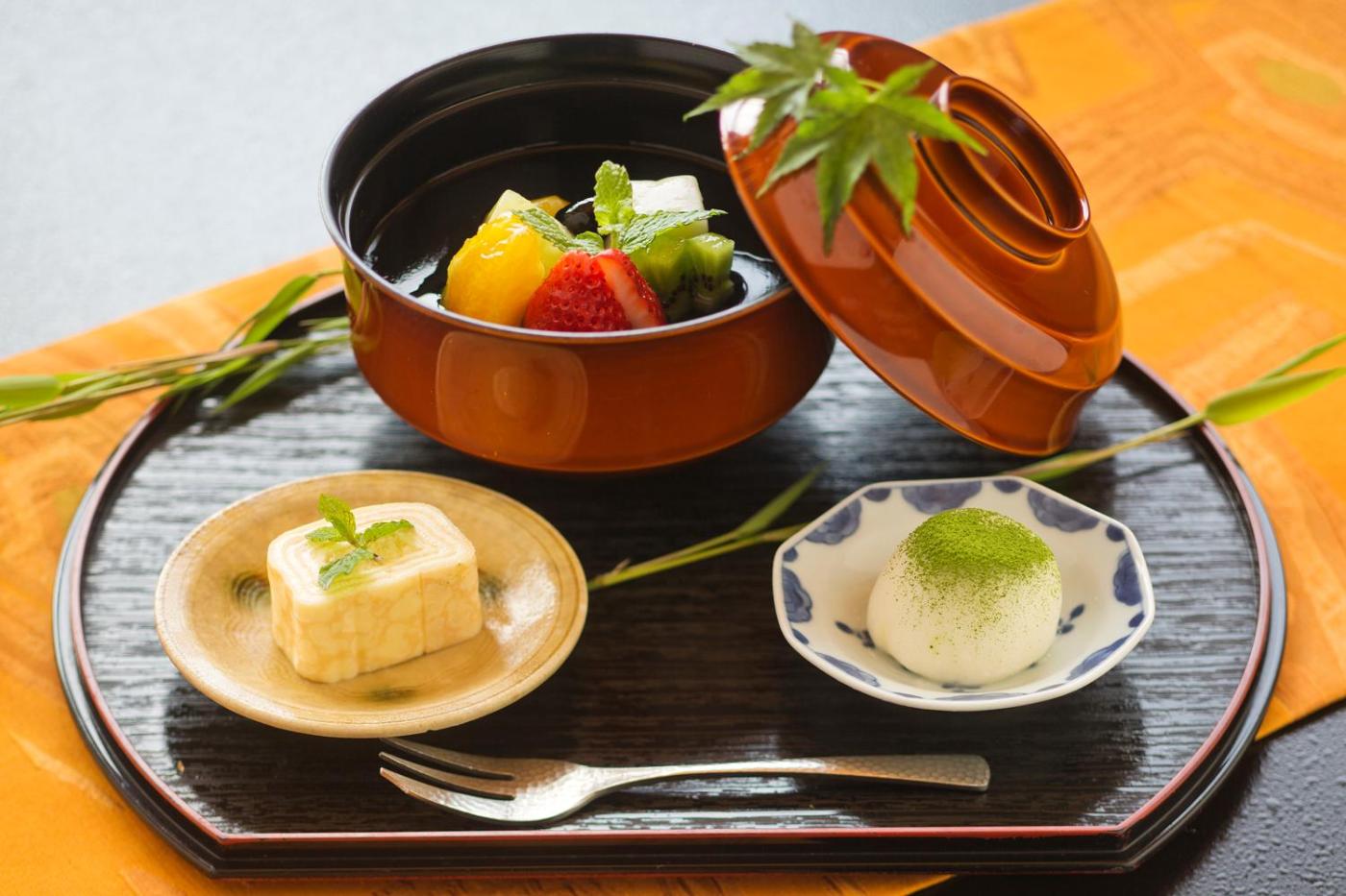 An Asian breakfast is available at the ryokan.