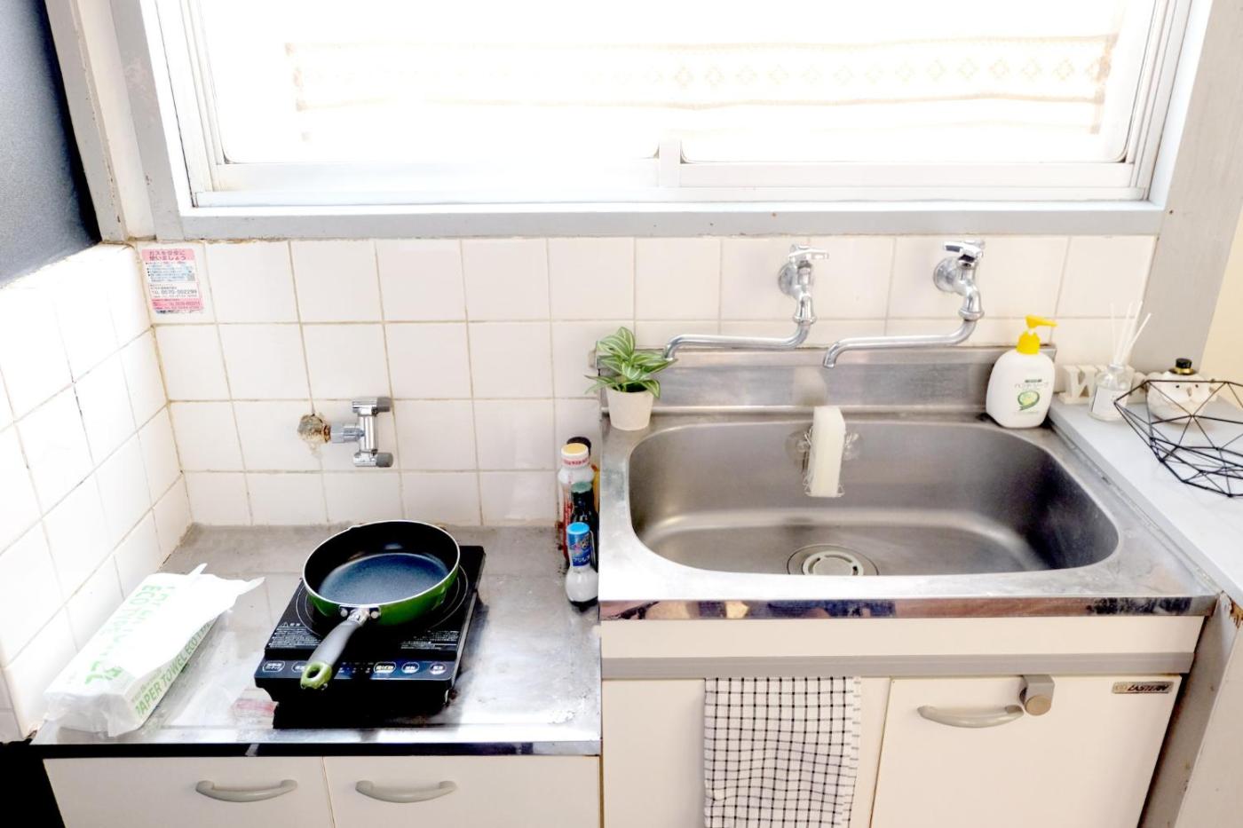 Apartment. Guests can make meals in the kitchen that has a stovetop, a refrigerator, kitchenware and a microwave. The apartment features air conditioning, a washing machine, as well as a private bathroom boasting a bath and a shower. The unit has 1 bed and 1 futon.