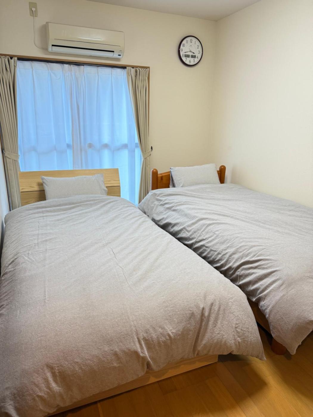 Two-Bedroom Apartment. The air-conditioned apartment has 2 bedrooms and 1 bathroom with a bath and a shower. The kitchen features a refrigerator, a microwave and a toaster. The apartment features a washing machine, tatami, an electric kettle, a sofa and a flat-screen TV. The unit has 2 beds and 3 futons.