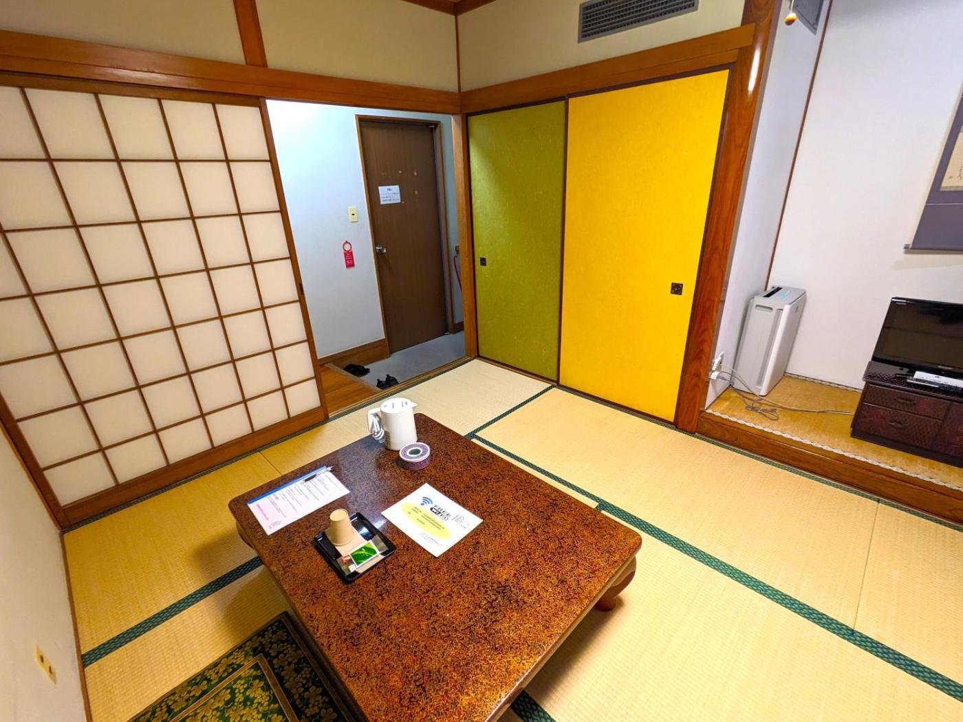 Japanese-Style Quadruple Room. The quadruple room provides air conditioning, tatami, as well as a private bathroom featuring a bath and a shower. The quadruple room features a tea and coffee maker, a wardrobe, a sofa, pajamas and a flat-screen TV. The unit offers 4 futons.