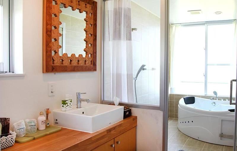 One-Bedroom Villa. Guests will have a special experience as this villa features a hot tub and a private open-air bath. Guests will find a stovetop, a refrigerator, a microwave and a toaster in the kitchen. The villa also has a barbecue. The air-conditioned villa offers a flat-screen TV, a washing machine, a tea and coffee maker, a dining area as well as sea views. The unit offers 4 beds and 3 futons.