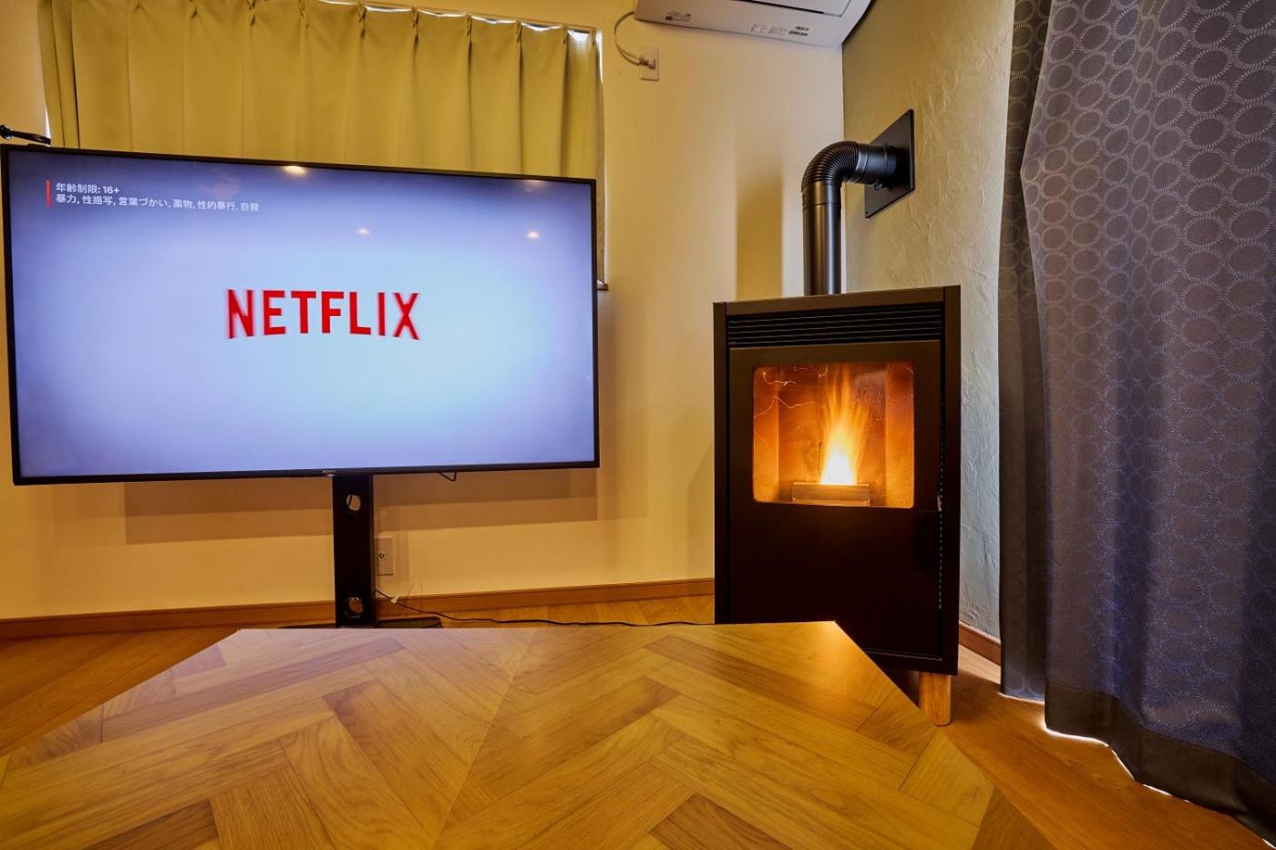 Villa. This villa features a fireplace. Boasting a private entrance, this air-conditioned villa features 1 living room, 4 separate bedrooms and 1 bathroom with a bath and a shower. The well-fitted kitchen has a stovetop, a refrigerator, kitchenware and a microwave. Featuring a terrace, this villa also features a washing machine, tatami and a flat-screen TV with streaming services. The unit has 5 beds and 2 futons.