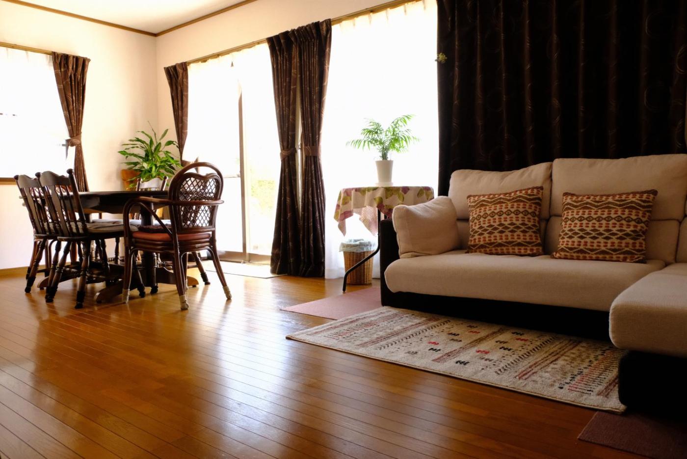 Two-Bedroom House. The air-conditioned holiday home features 2 bedrooms and 1 bathroom with a bath and a shower. Guests will find a stovetop, a refrigerator, kitchenware and an oven in the kitchen. The holiday home also has a barbecue. The holiday home offers a washing machine, tatami, soundproof walls, a flat-screen TV with satellite channels, as well as garden views. The unit offers 2 beds and 3 futons.