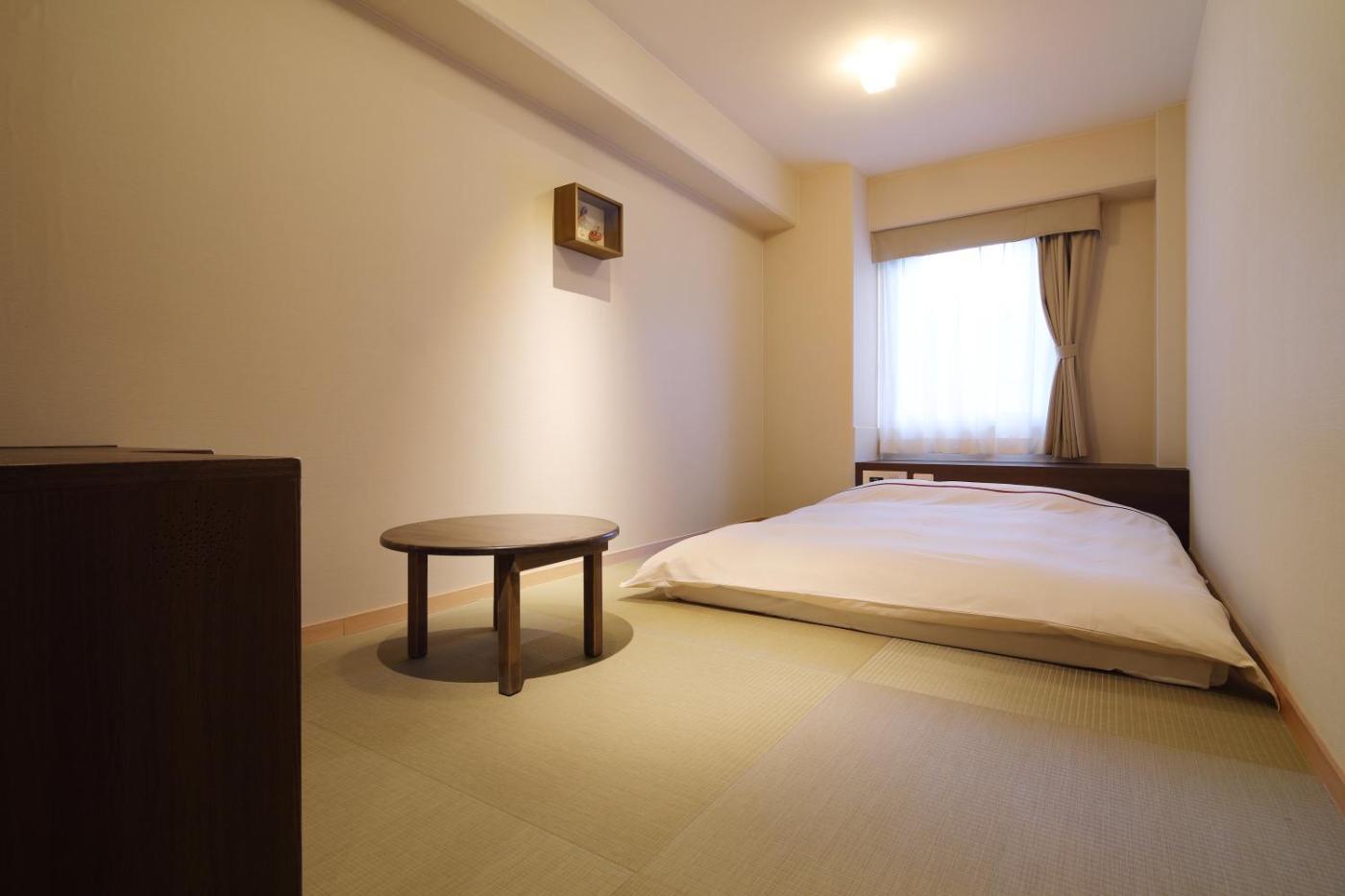 Twin Room - Non-Smoking. The twin room includes a private bathroom, well-fitted with a bath, a shower, a bidet, a hairdryer and slippers. The air-conditioned twin room provides a flat-screen TV with satellite channels, tatami, soundproof walls, an electric kettle as well as city views. The unit offers 2 futons. ;