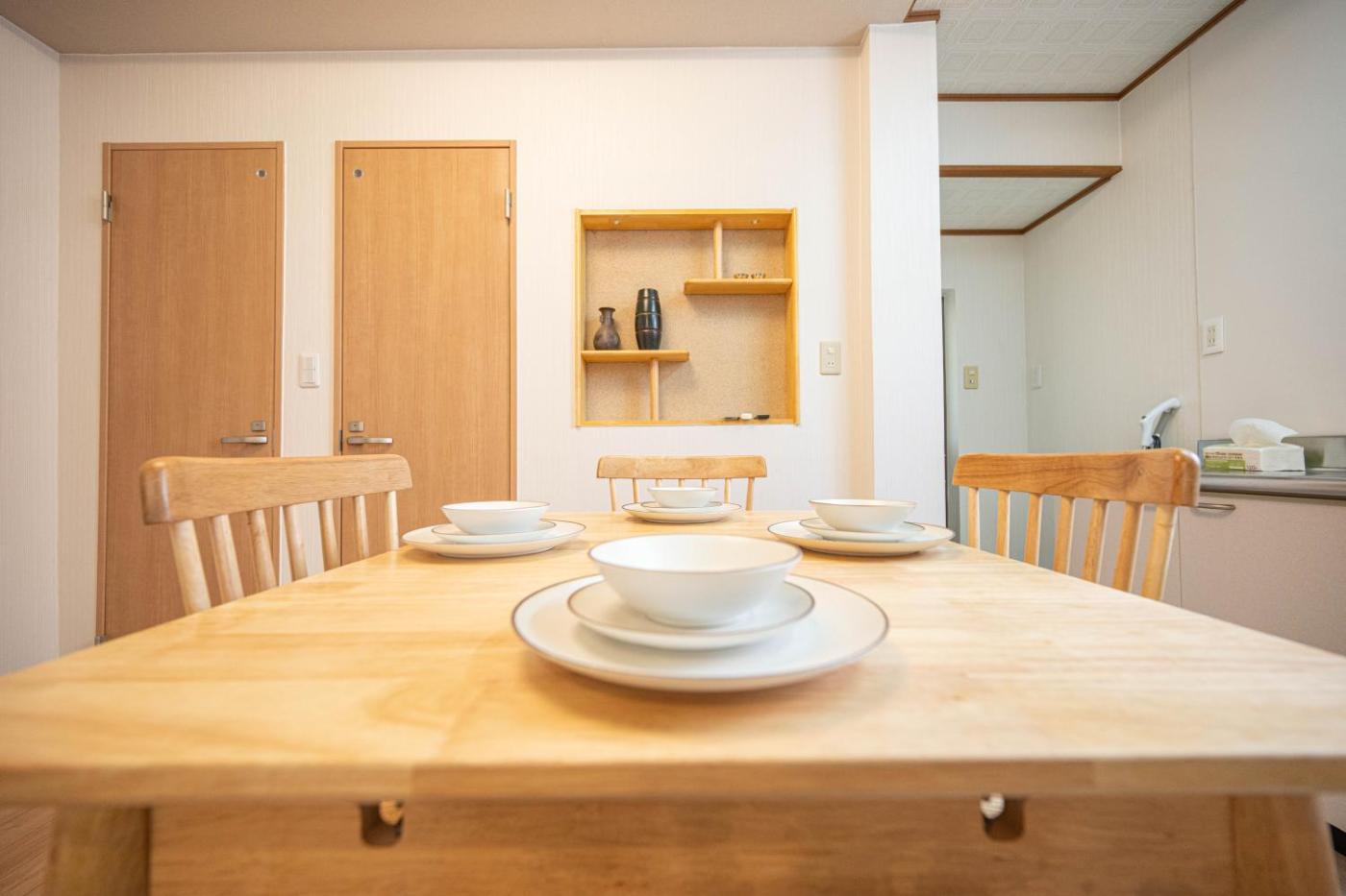 Three-Bedroom Apartment. The air-conditioned apartment has 2 bedrooms and 1 bathroom with a bath and a bidet. The apartments kitchen, which features a microwave, is available for cooking and storing food. The apartment features a washing machine, tatami, a dining area, an electric kettle, as well as a flat-screen TV with streaming services. The unit has 3 beds.