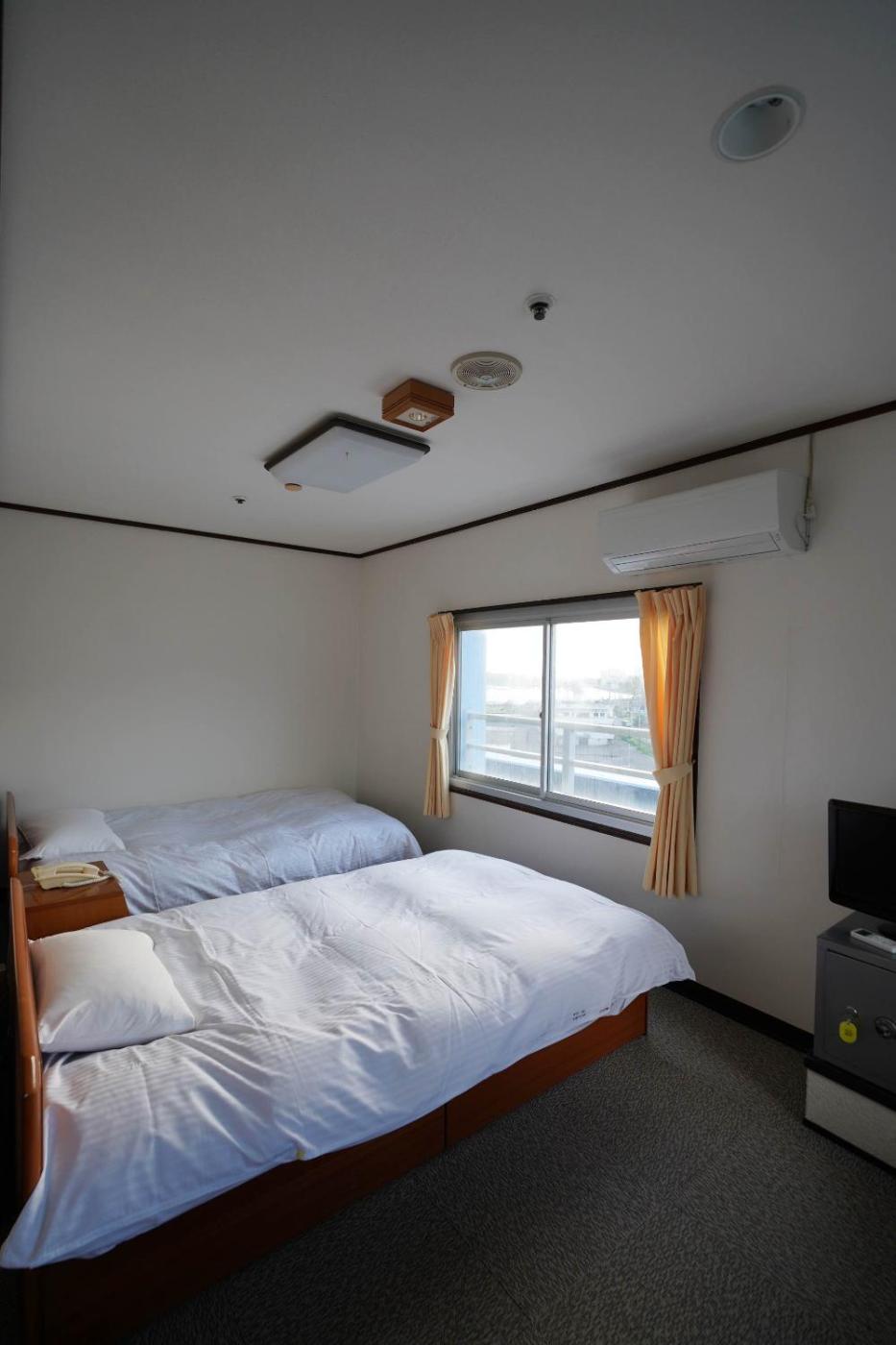 Twin Room with Shared Toilet. The twin room provides air conditioning, tatami, as well as a shared bathroom featuring a hairdryer and slippers. The unit offers 2 futons.