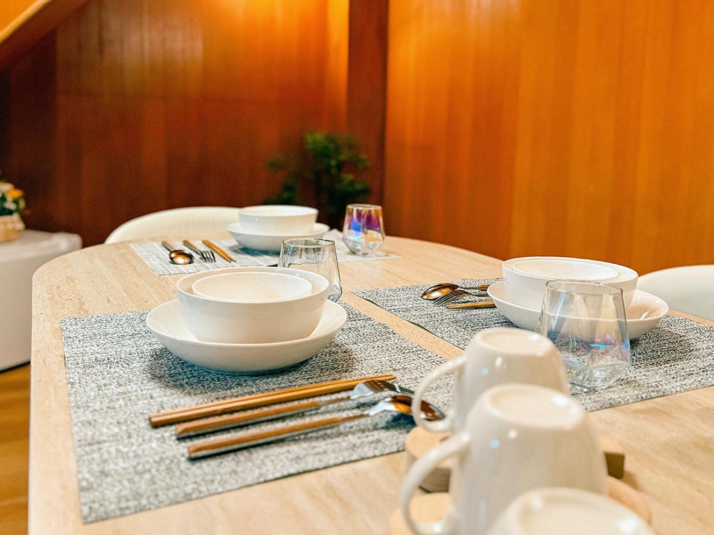 Three-Bedroom Villa. This villa is comprised of 1 living room, 3 separate bedrooms and 1 bathroom with a bath and free toiletries. In the fully equipped kitchen, guests will find a refrigerator, kitchenware, a microwave and an electric kettle. This villa is air-conditioned and features a seating area with a flat-screen TV, a washing machine, tatami, soundproof walls, as well as a dining area. The unit offers 7 futons.