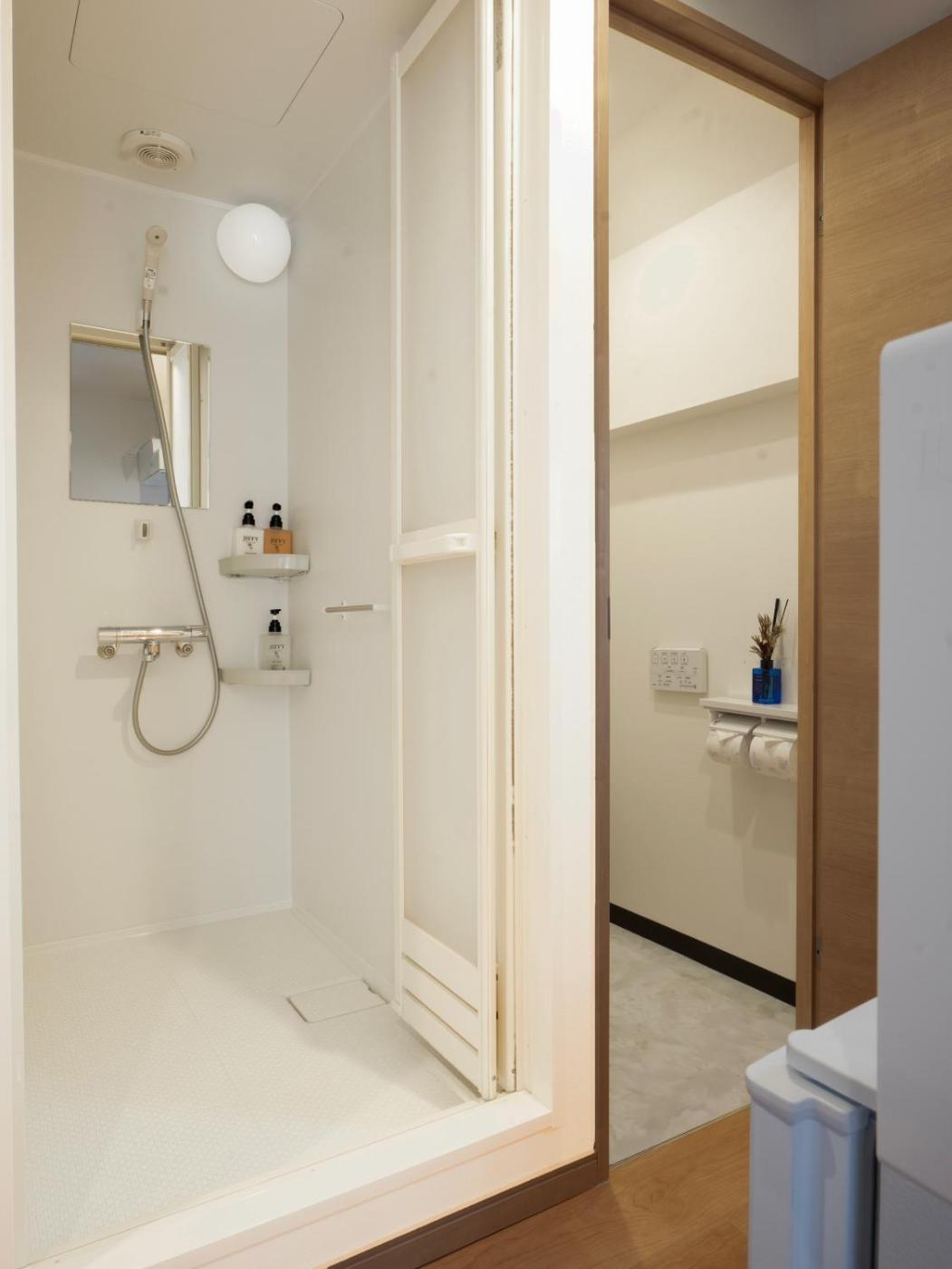 One-Bedroom Apartment. The air-conditioned apartment has 1 bedroom and 1 bathroom with a shower and a hairdryer. Meals can be prepared in the well-fitted kitchen, which has a stovetop, a refrigerator, kitchenware and a microwave. The apartment features a flat-screen TV, a washing machine, tatami, an electric kettle as well as city views. The unit has 1 futon.