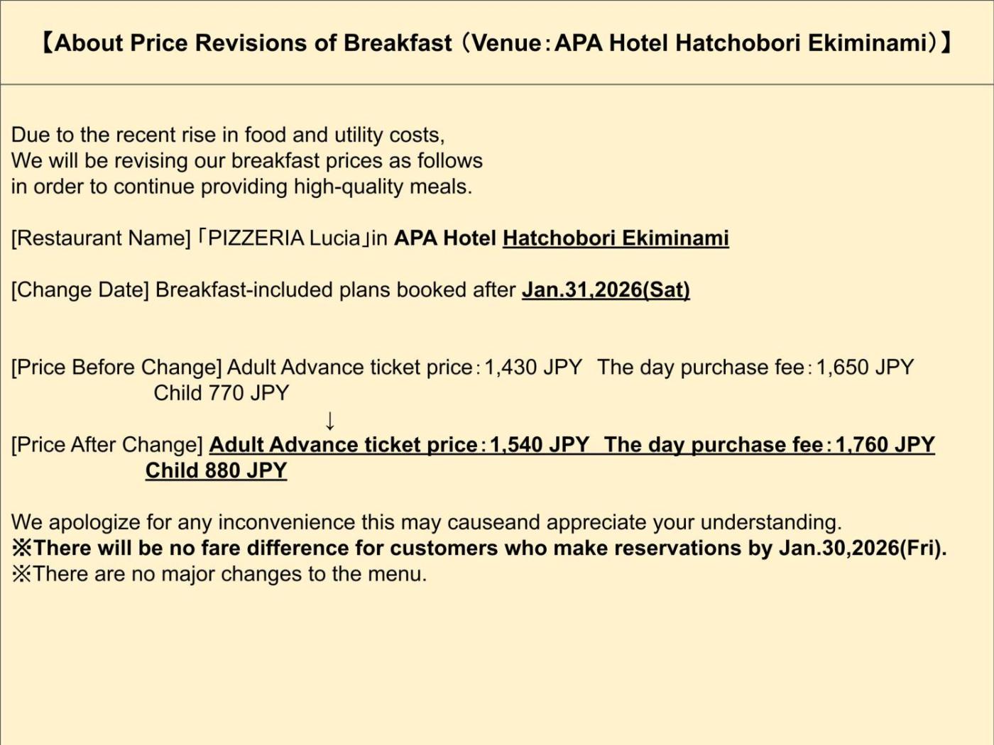 Additional information about the offer Japan - Tokyo - APA Hotel Ginza Shintomicho Ekimae Kita, opinions of holidaymakers as well as available dates can be found on the website our partner.