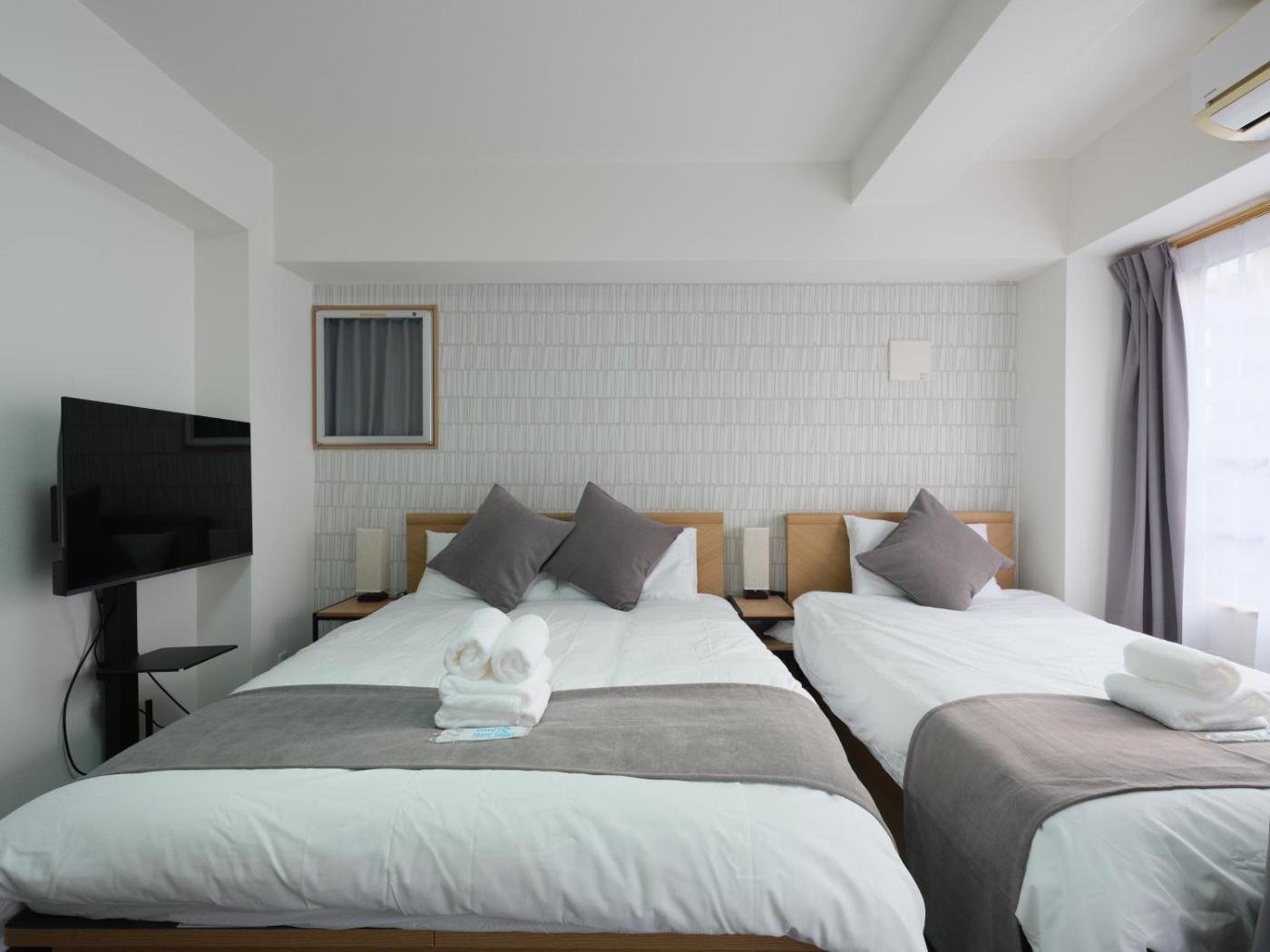 Three-Bedroom Apartment. This spacious apartment consists of 1 living room, 3 separate bedrooms and 1 bathroom with a bath and a shower. Guests can make meals in the kitchen that is equipped with a stovetop, a refrigerator, a dishwasher and kitchenware. The air-conditioned apartment provides a flat-screen TV with streaming services, a washing machine, tatami, a seating area as well as city views. The unit offers 6 beds. ;