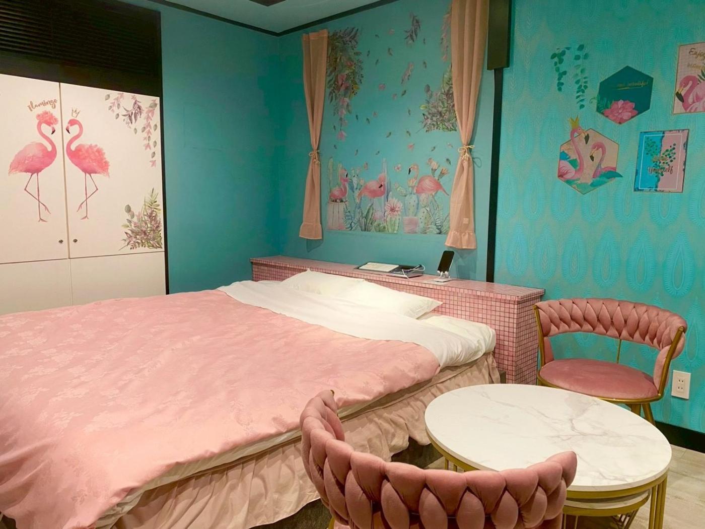 The rooms are fitted with air conditioning, a fridge, a microwave, a kettle, a bidet, free toiletries and a desk. Rooms have a private bathroom with a shower, a hairdryer and slippers. Guest rooms in the love hotel are fitted with a flat-screen TV and bathrobes.