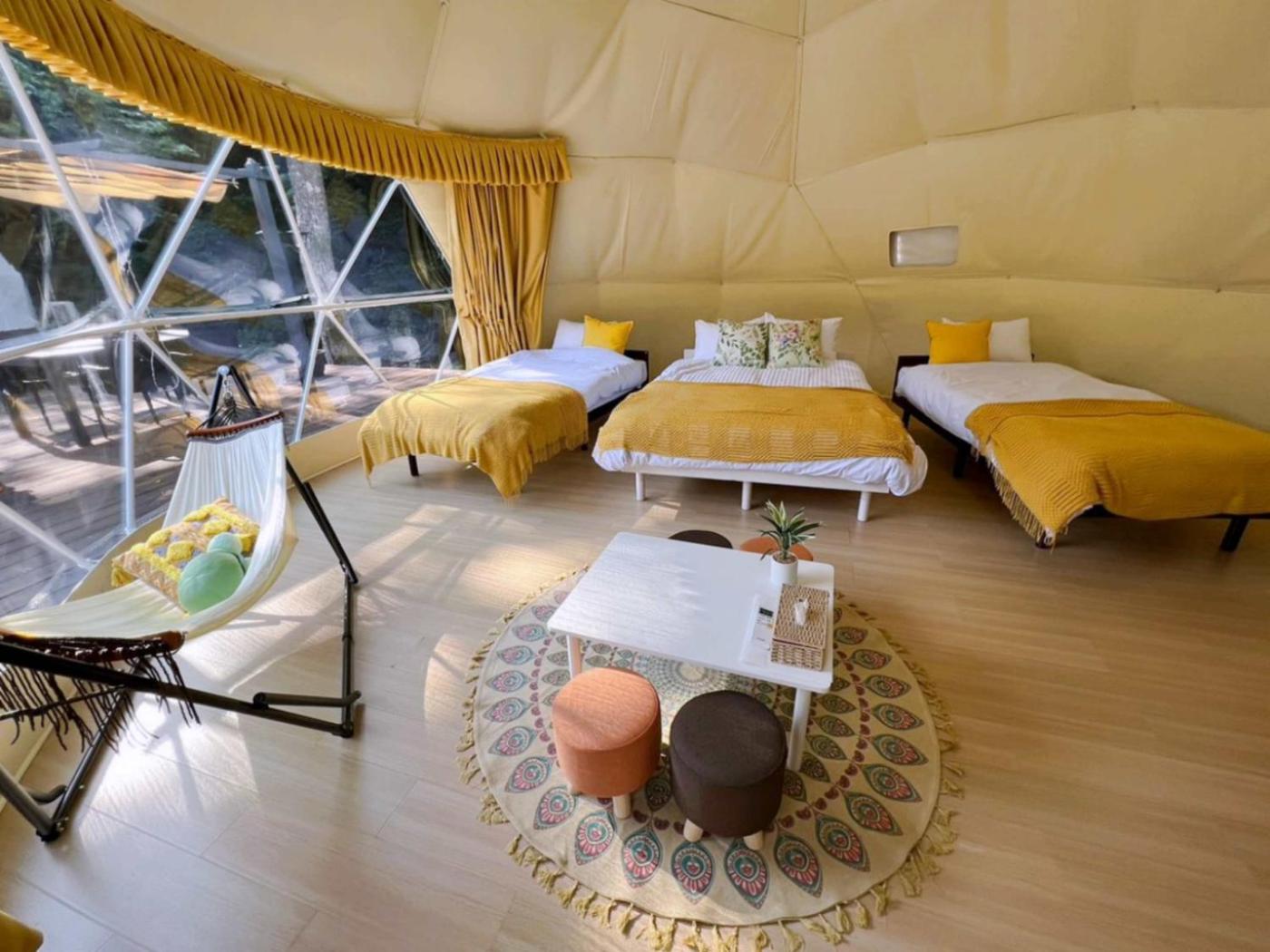 Tent. The tent features air conditioning, a tea and coffee maker, a terrace with mountain views as well as a shared bathroom boasting a hairdryer. The unit has 3 beds. ;