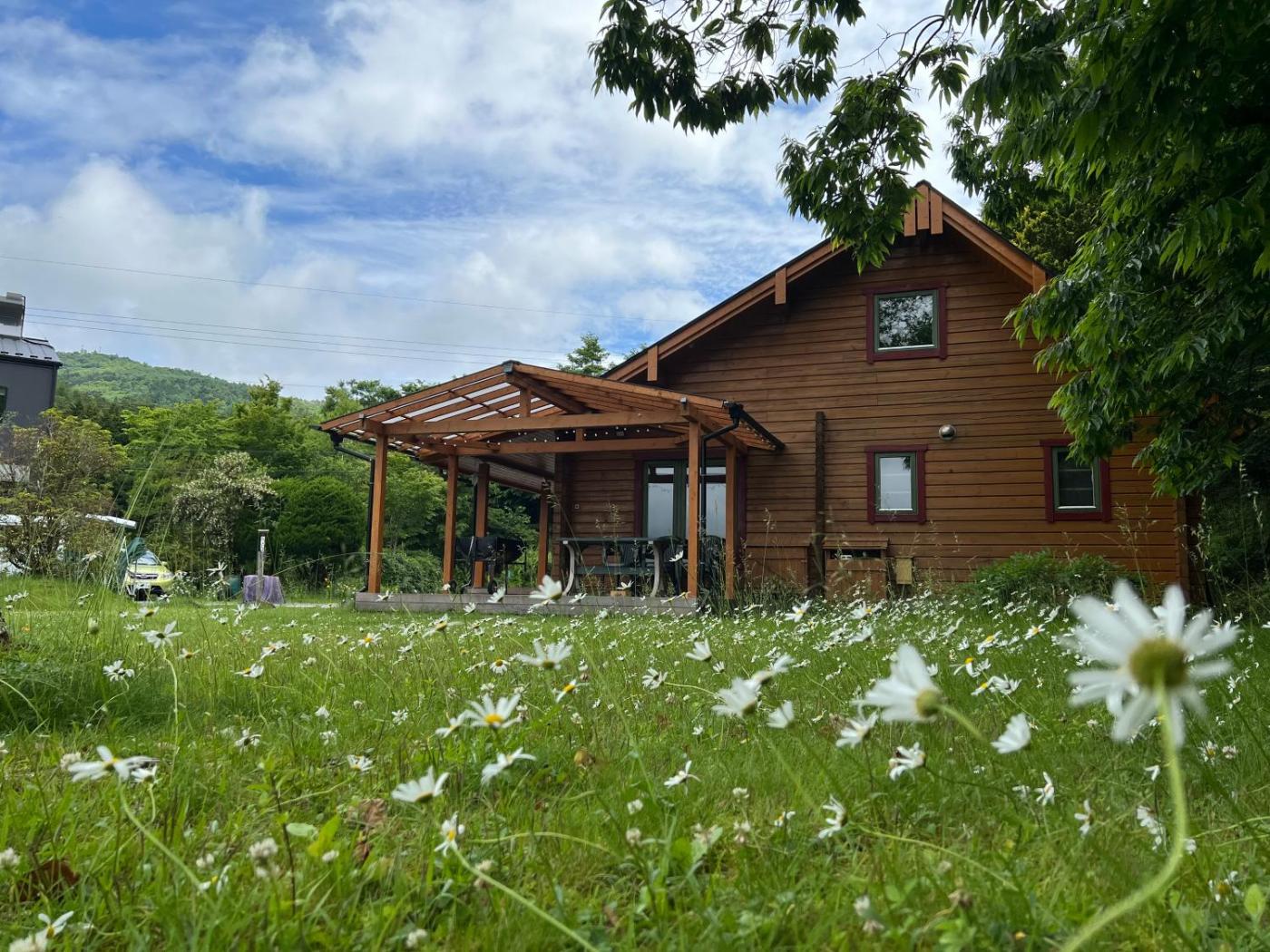 Two-Bedroom Chalet. The wooden Cottage comes with free Wi-Fi and a hot tub and shower. It has a garden and a fully equipped kitchen. We offers a wooden room featuring overlooking Mount Fuji. The living room features a sofa, a wall-mounted flat-screen TV and a DVD player, while there is a spacious dining area. The kitchen includes a IH cooking stove, a microwave and a fridge.