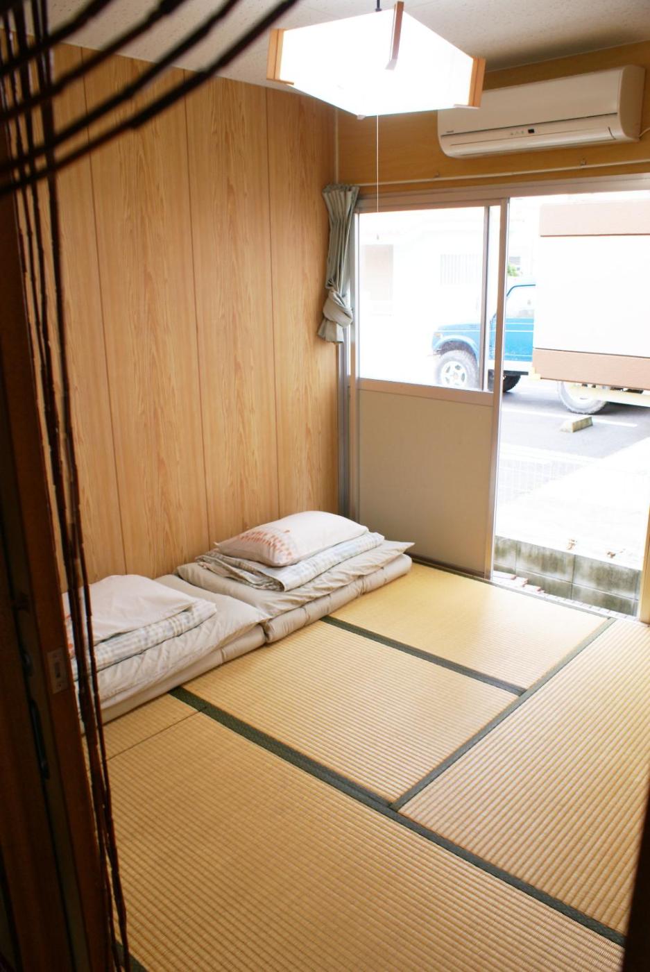 Japanese-Style Room. Features tatami (woven-straw) flooring and Japanese futon bedding. Has air conditioning and shared showers and toilets. ;