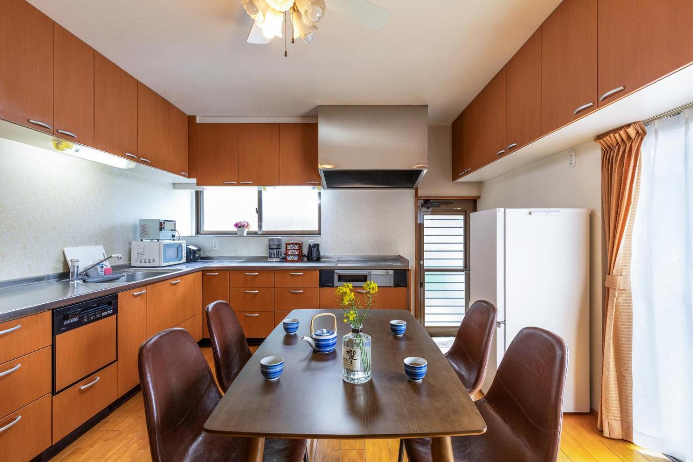 The ryokan provides guests with a terrace, garden views, a seating area, a flat-screen TV, a fully equipped kitchen with a microwave and a toaster, and a private bathroom with walk-in shower and slippers. A fridge, a stovetop and kitchenware are also provided, as well as a coffee machine and a kettle. The units include bed linen.
