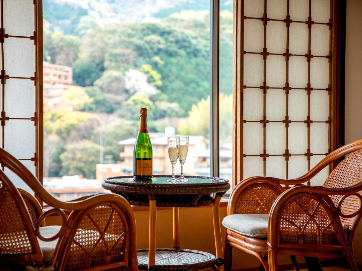 Japanese-Style Superior Room. Offering free toiletries, this family room includes a private bathroom with a bath, a shower and a bidet. The air-conditioned family room offers a flat-screen TV, tatami, a wardrobe, a safe deposit box as well as mountain views. The unit has 5 futons. ;